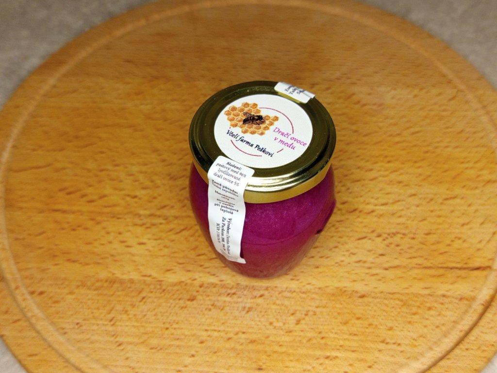 - pastovaný květový med 95 %, lyofilizované dračí ovoce 5 %