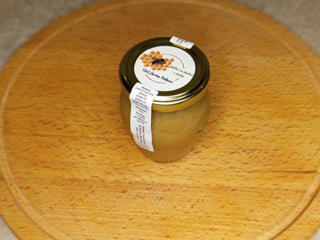 - pastovaný květový med 96 %, jablečný prášek 3 %, skořice 1 %