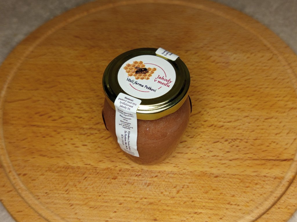- pastovaný květový med 95 %, lyofilizované jahody 5 %